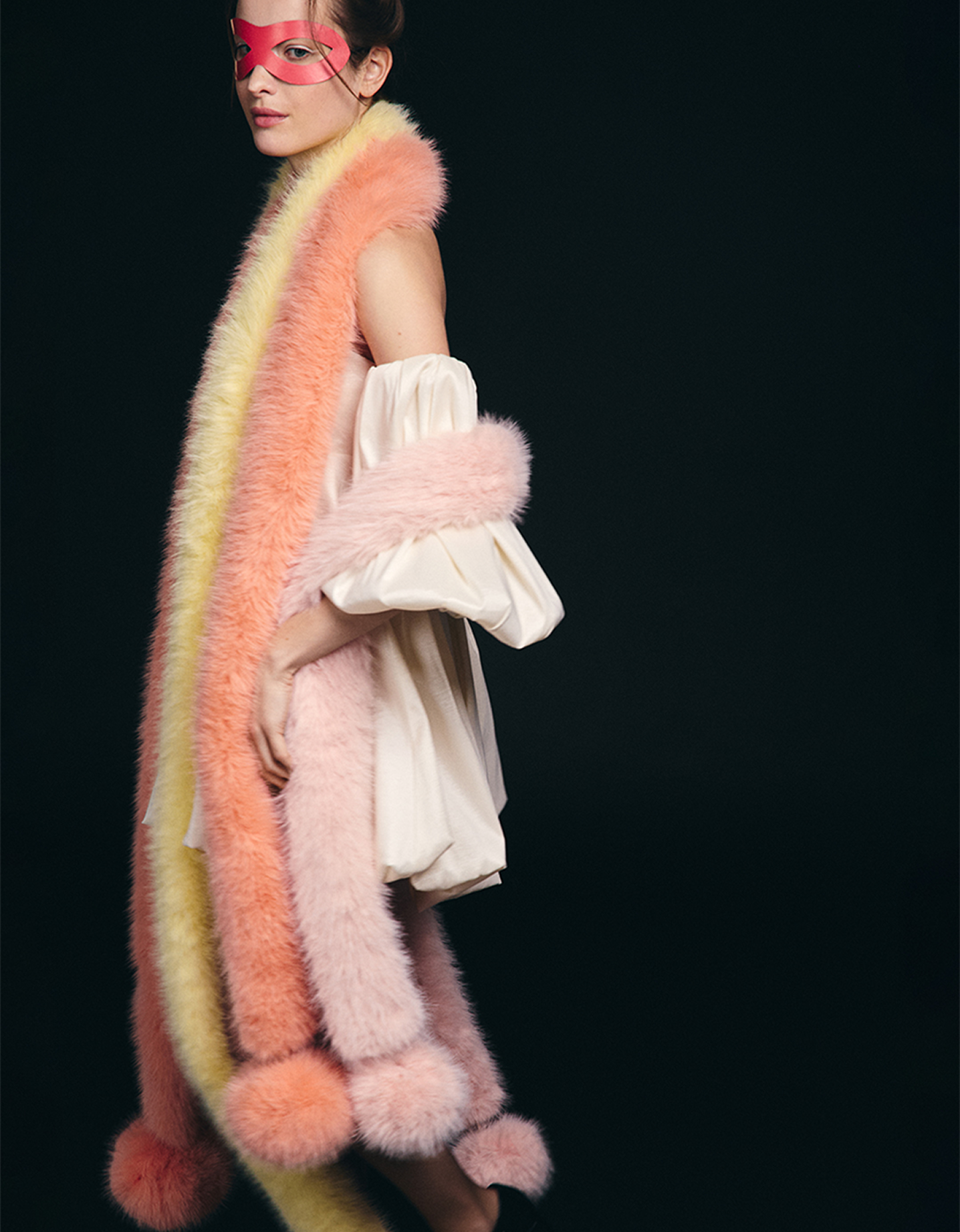Яркие, как конфетти, шарфы с помпонами, укороченные шубы-манто с объемными рукавами и сумочки-ридикюли из меха — это ли не праздник?!
